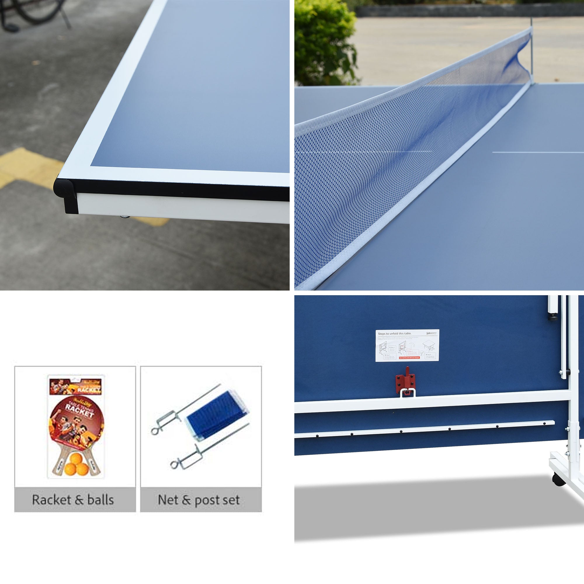 DH 13mm Foldable Portable Ping Pong Table Tennis Table + Accessory Package - Blue