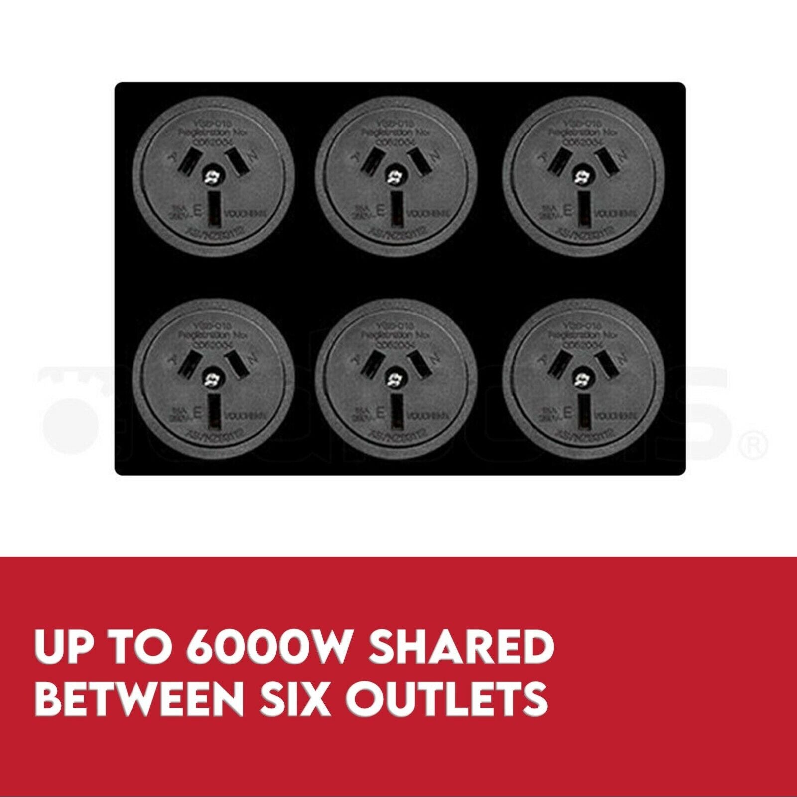 - Outputs 6x Single Phase 240V AC + 12V DC