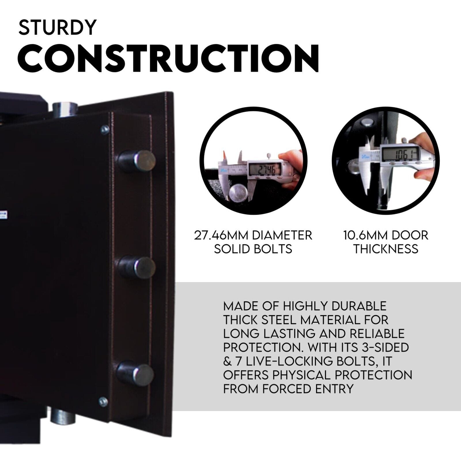 - Vault Locking System: 5 x extra large 35mm diameter bolts