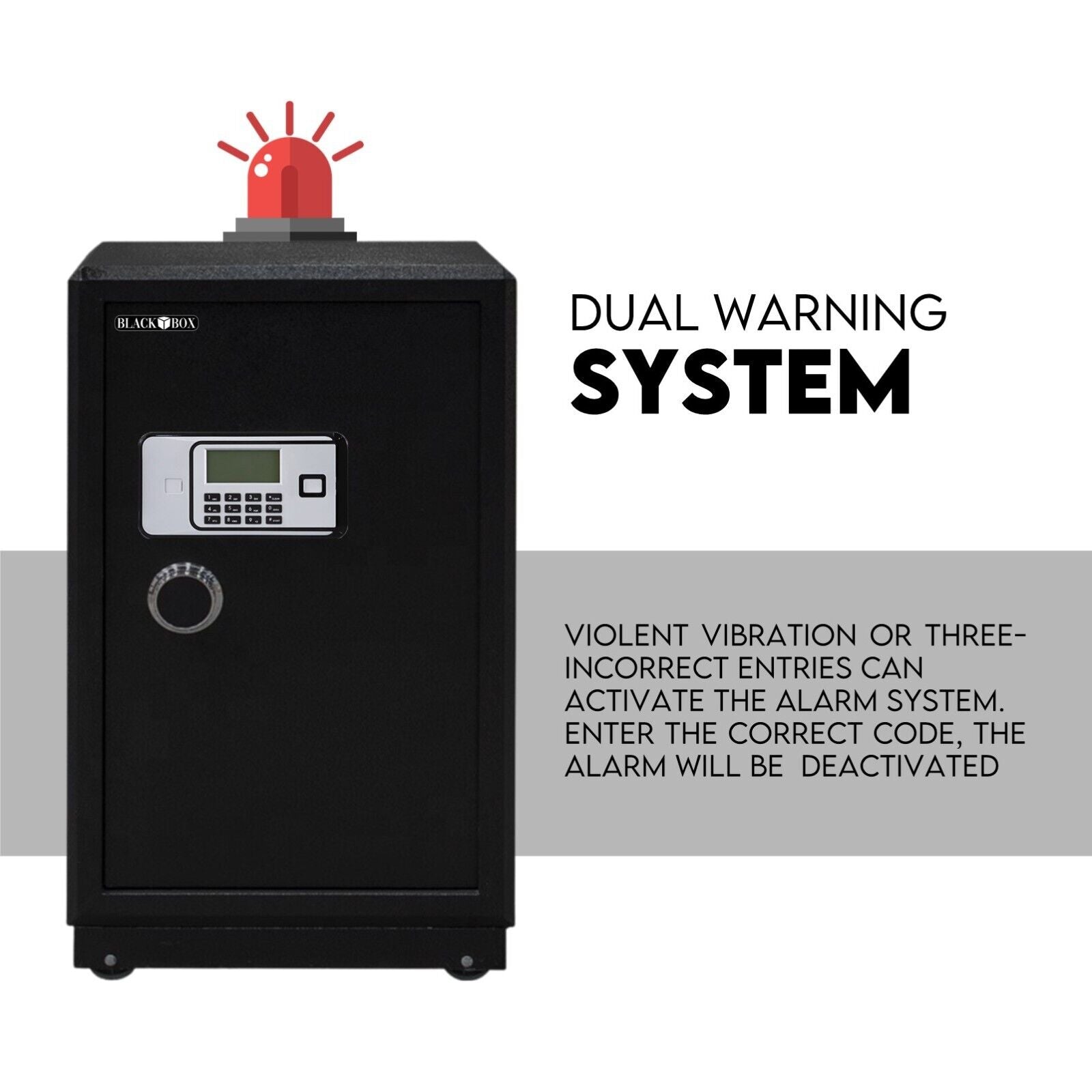The safe also comes with Main, Override, and Drawer box keys so you can always retrieve your belongings when needed. Rest easy, knowing that your valuable assets are protected. It also has a Wrong Code Alarm system where if three consecutive codes are inputted, it will alarm in 60 seconds, and the system would lockout. On the other hand, if under sleep mode, the safe would give an alarm when shaking.