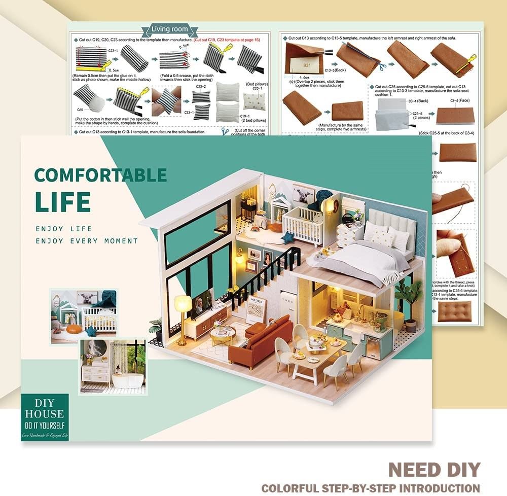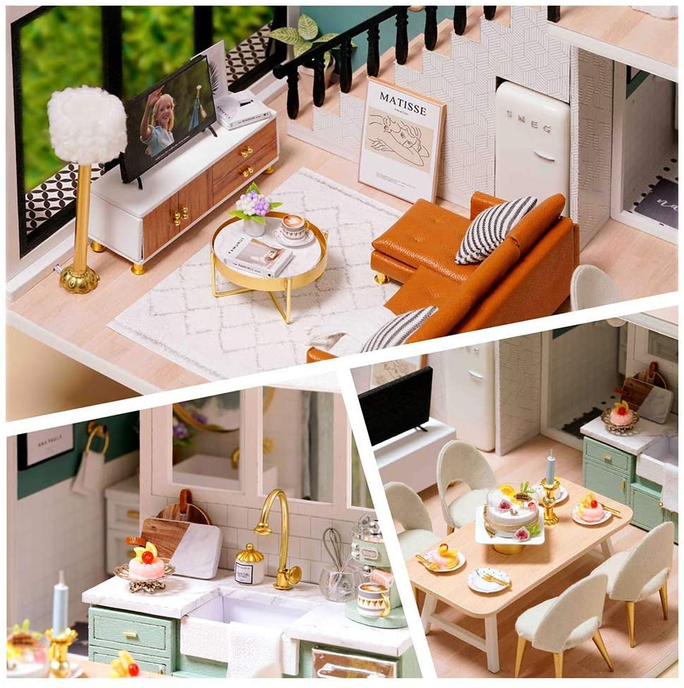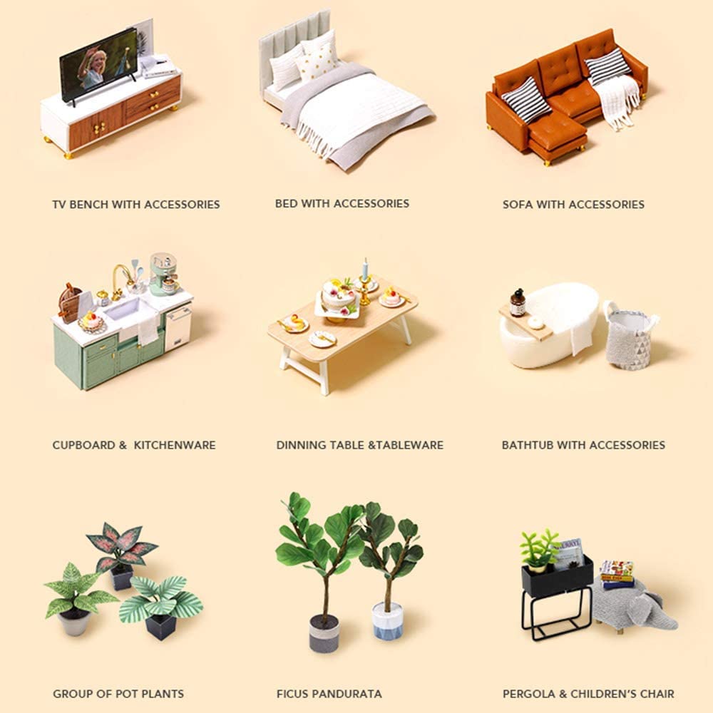 - Excellent quality materials with a careful design. In addition, the LED light, plants, ornament, furniture give it additional realism.