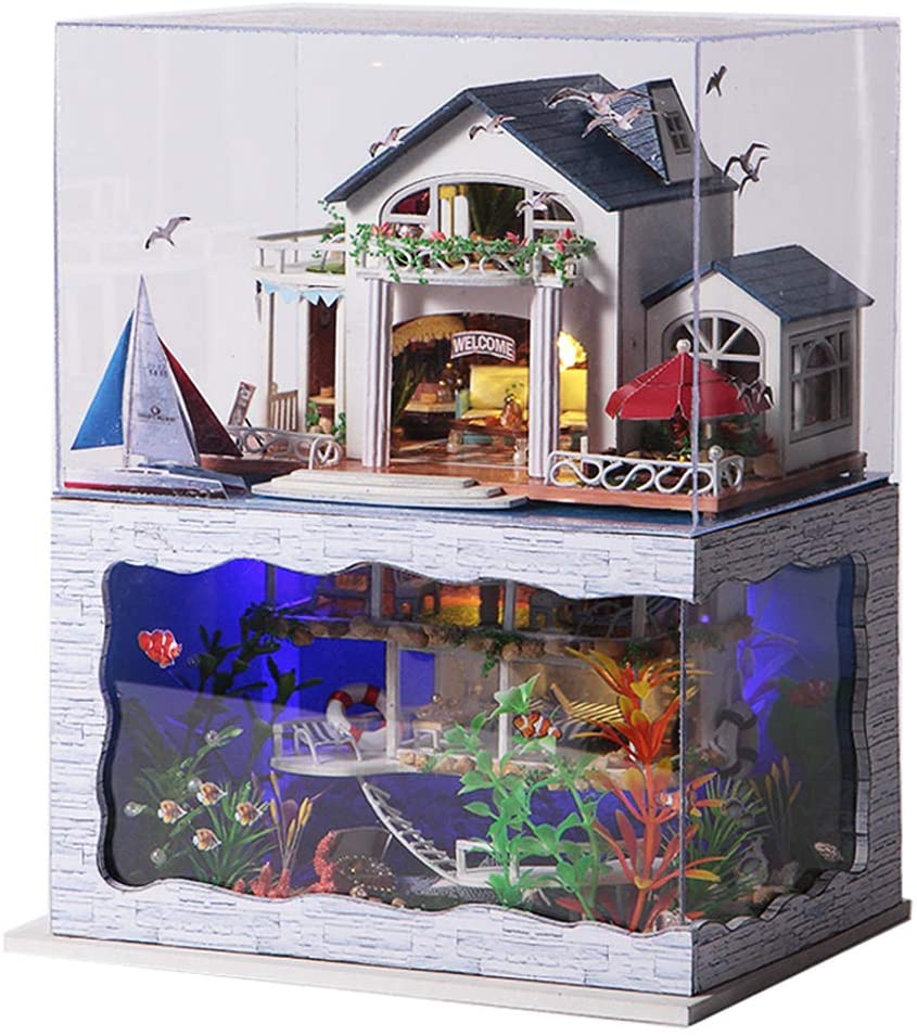 Dollhouse Miniature with Furniture, Wooden Dollhouse Kit Plus Dust Proof - M11 (1:24 Scale Creative Room Idea)