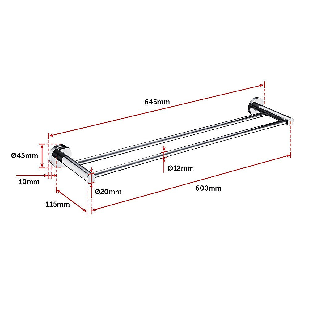 The bars have a width of 600mm, which could accommodate a single towel or multiple towels. Don't delay — the classic Double Towel Bar can be yours at our everyday low price. Order now!