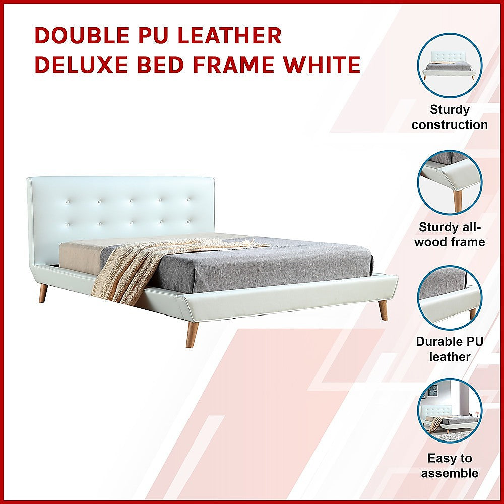 Features of the Palermo PU Leather Double Bed Frame and Button Tufted Headboard — White: