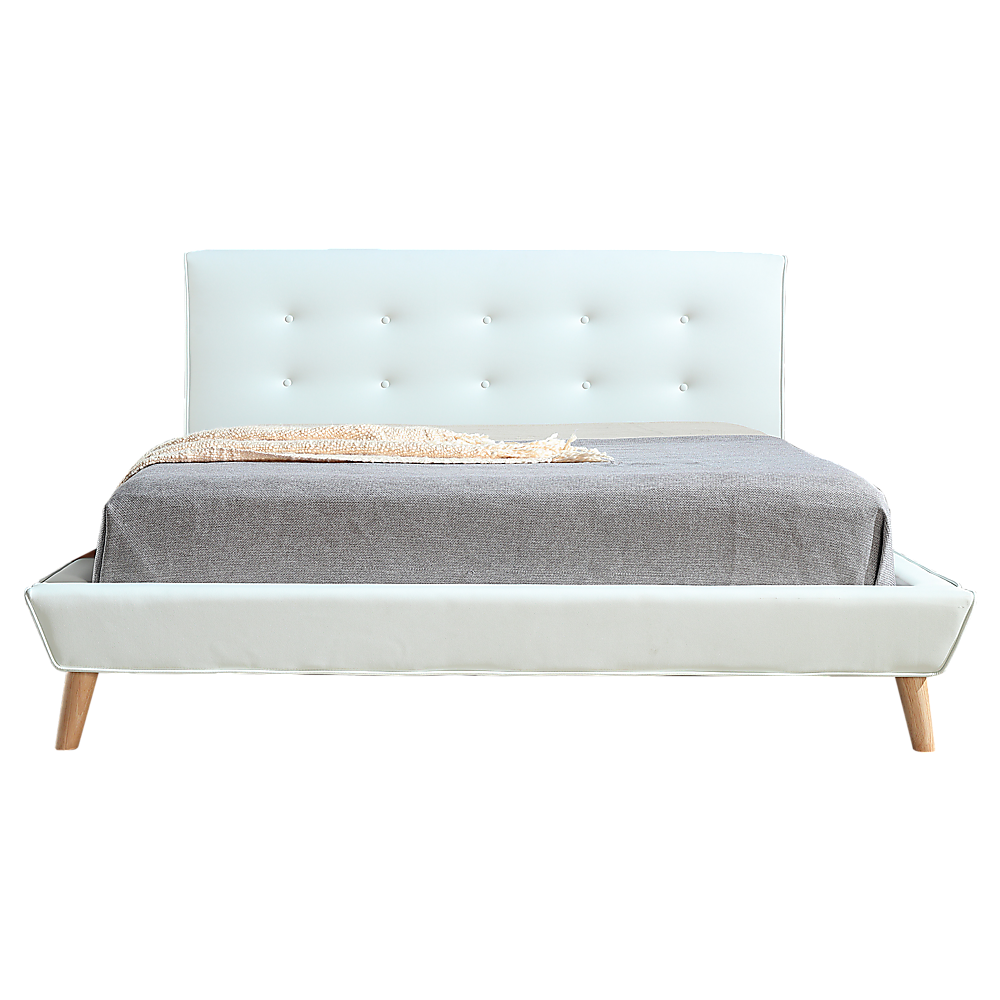 Palermo PU Leather Double Bed Frame and Button Tufted Headboard— White