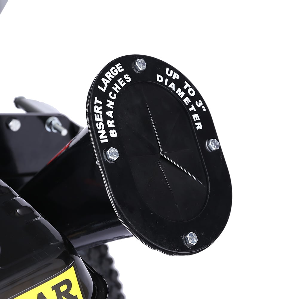 The rugged steel hopper stands at 90cm high, so yard waste can be dropped in with minimal effort while larger branches can be fed into the limb chute.
