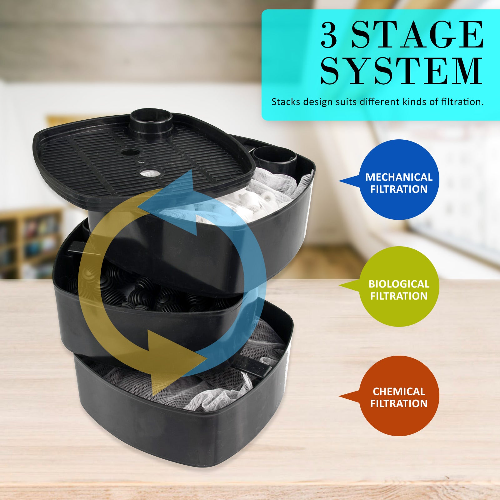 - Multi-Level biological, mechanical and chemical filtering system