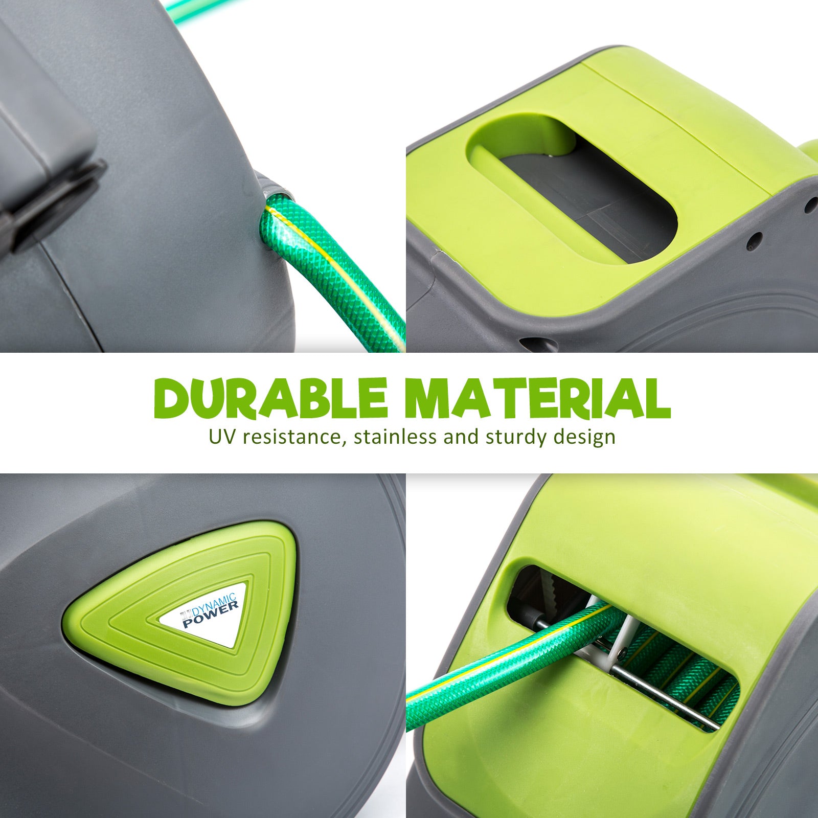 Dynamic Power Garden Water Hose 20M Retractable Rewind Reel Wall Mounted