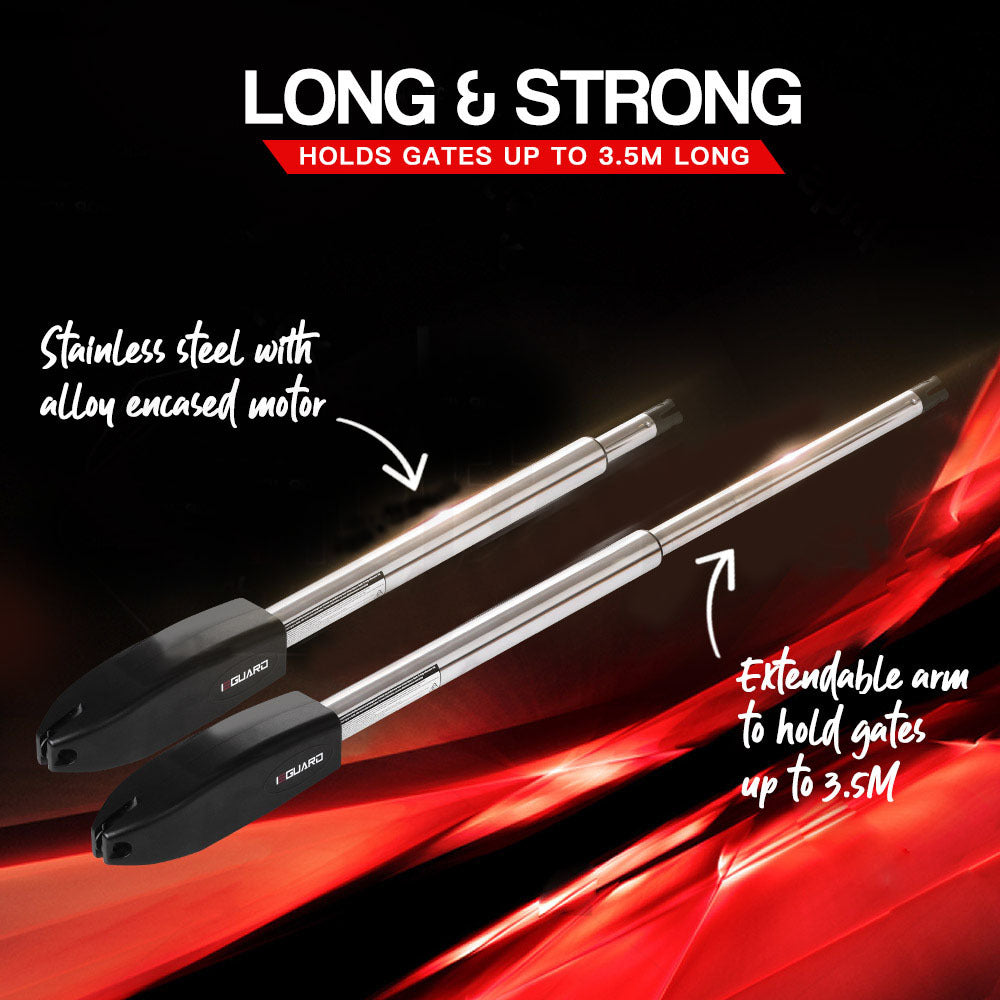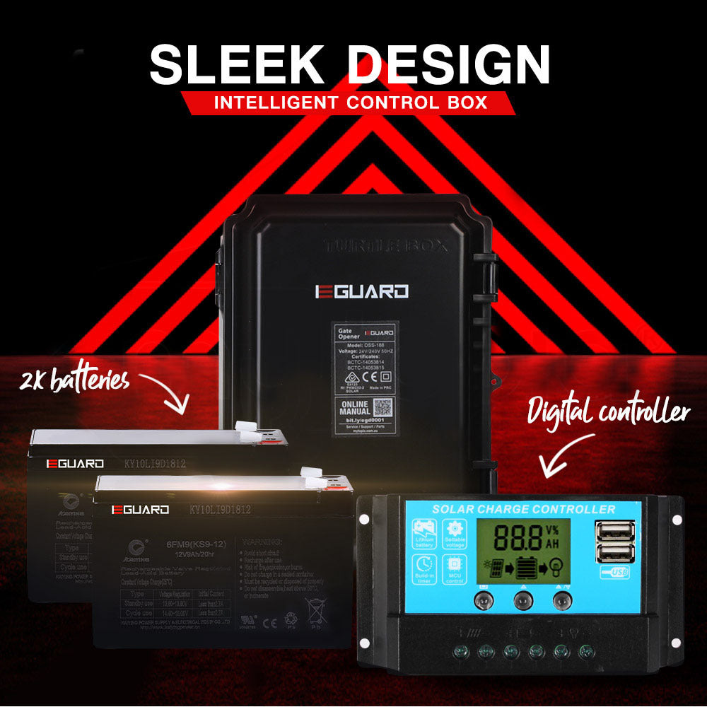 Thinking of securing your property and protecting your loved ones? The E-GUARD Solar Powered Automatic Double Swing Gate Opener is the answer to your needs. With a serious 900kg gate leaf arm opening capacity, your electric single swing-gate opener is built to provide heavy-duty lifting for a gate up to 3.5m in length, and enhance security to your premises.