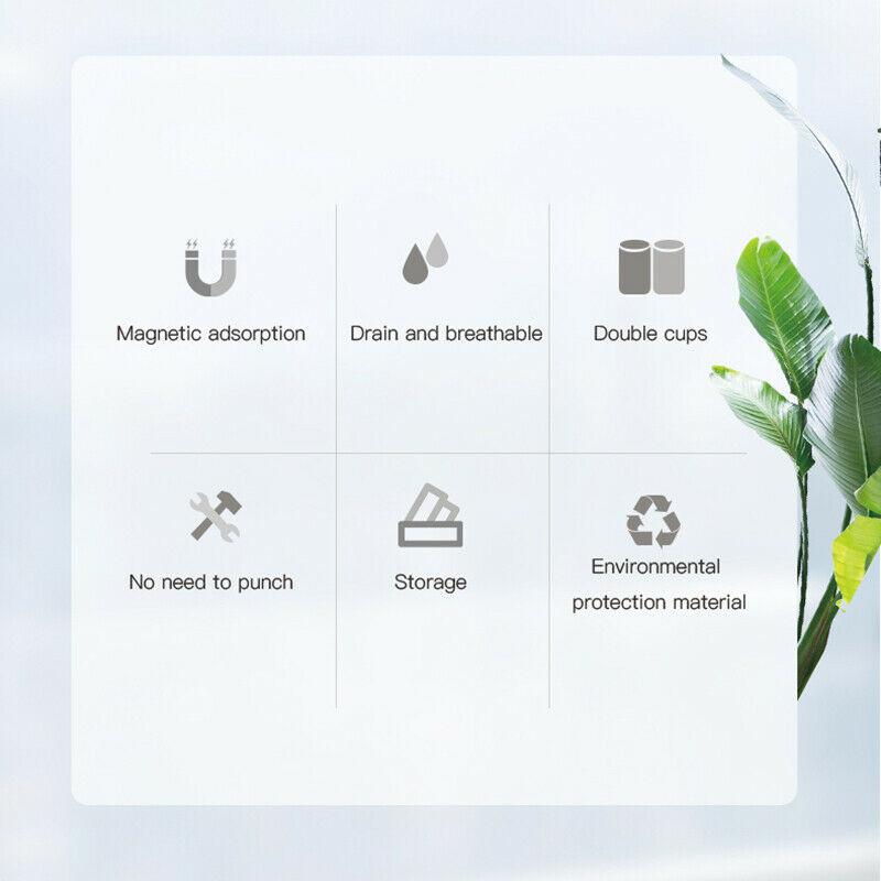 This toothbrush holder integrates 2 mouthwash cups and 1 Storage slots.