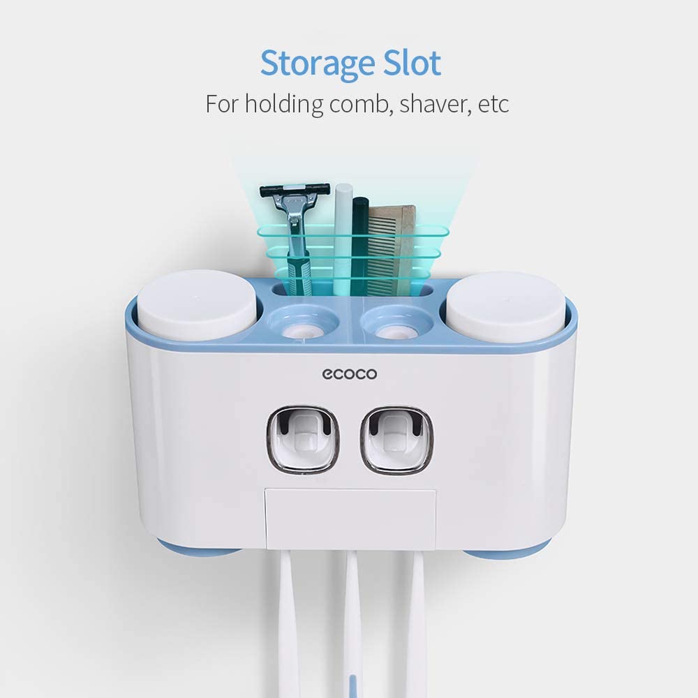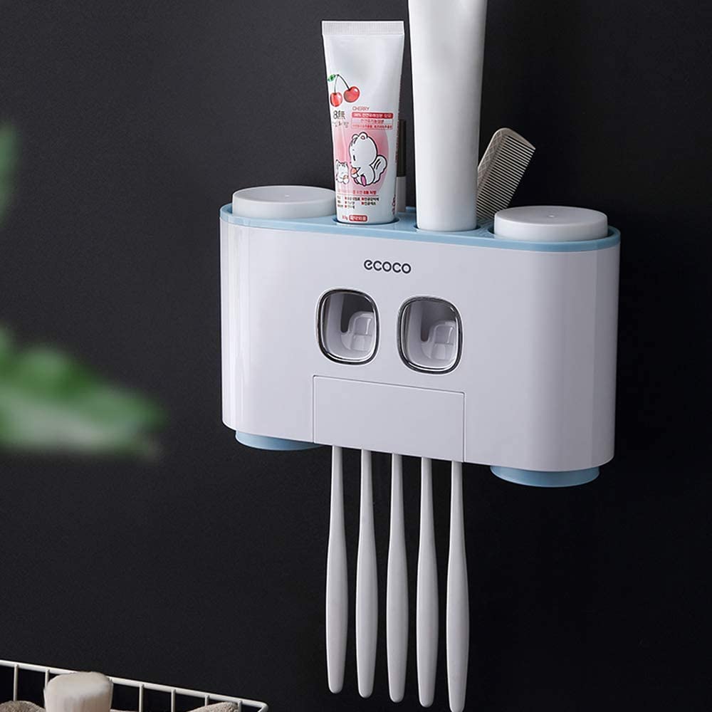 Multi-functional combination: a set of products containing 2 automatic toothpaste dispenser for children and adult, 4 dustproof environment friendly cup for 4 member of family, dust toothbrush holder, multi-functional incorporating shelves, a set of products to solve the problem of incorporating toiletries of a family.