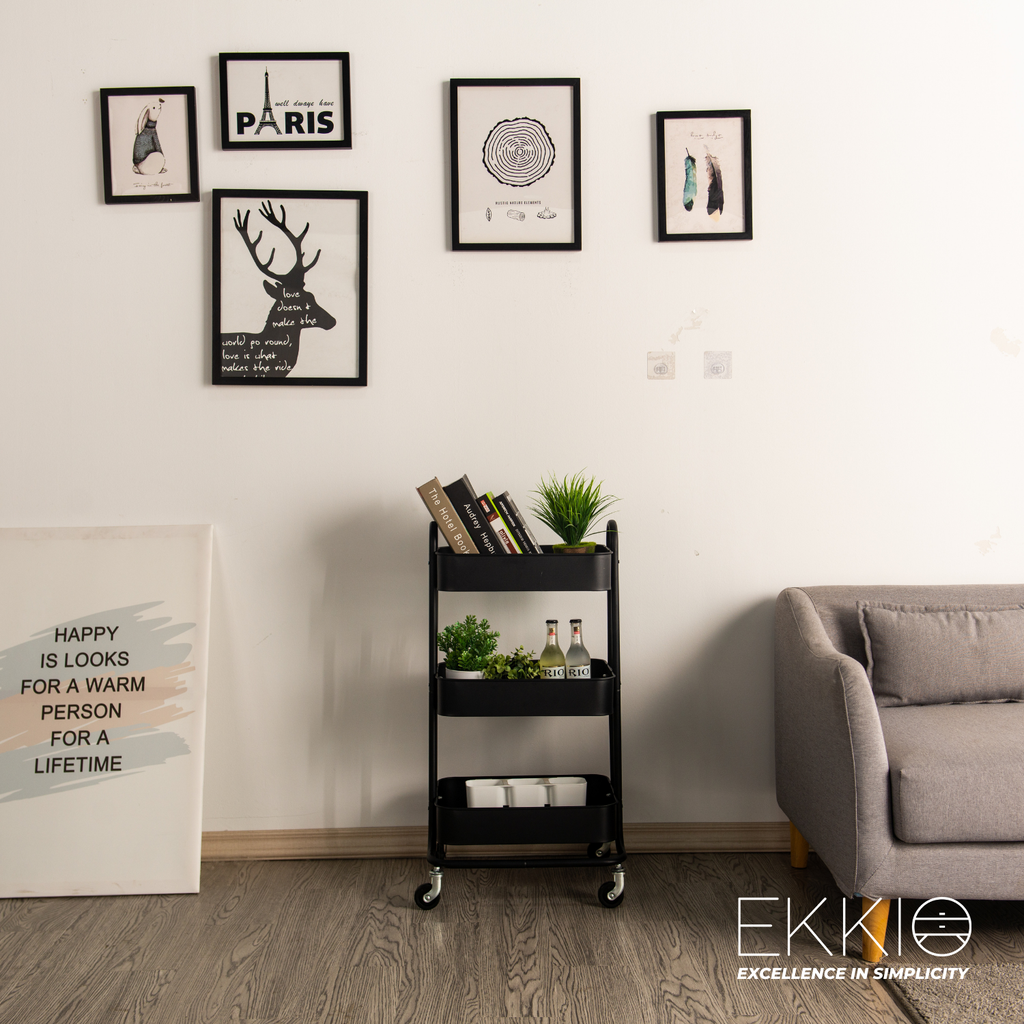 EKKIO Kitchen Trolley Cart 3 Tier (Black)