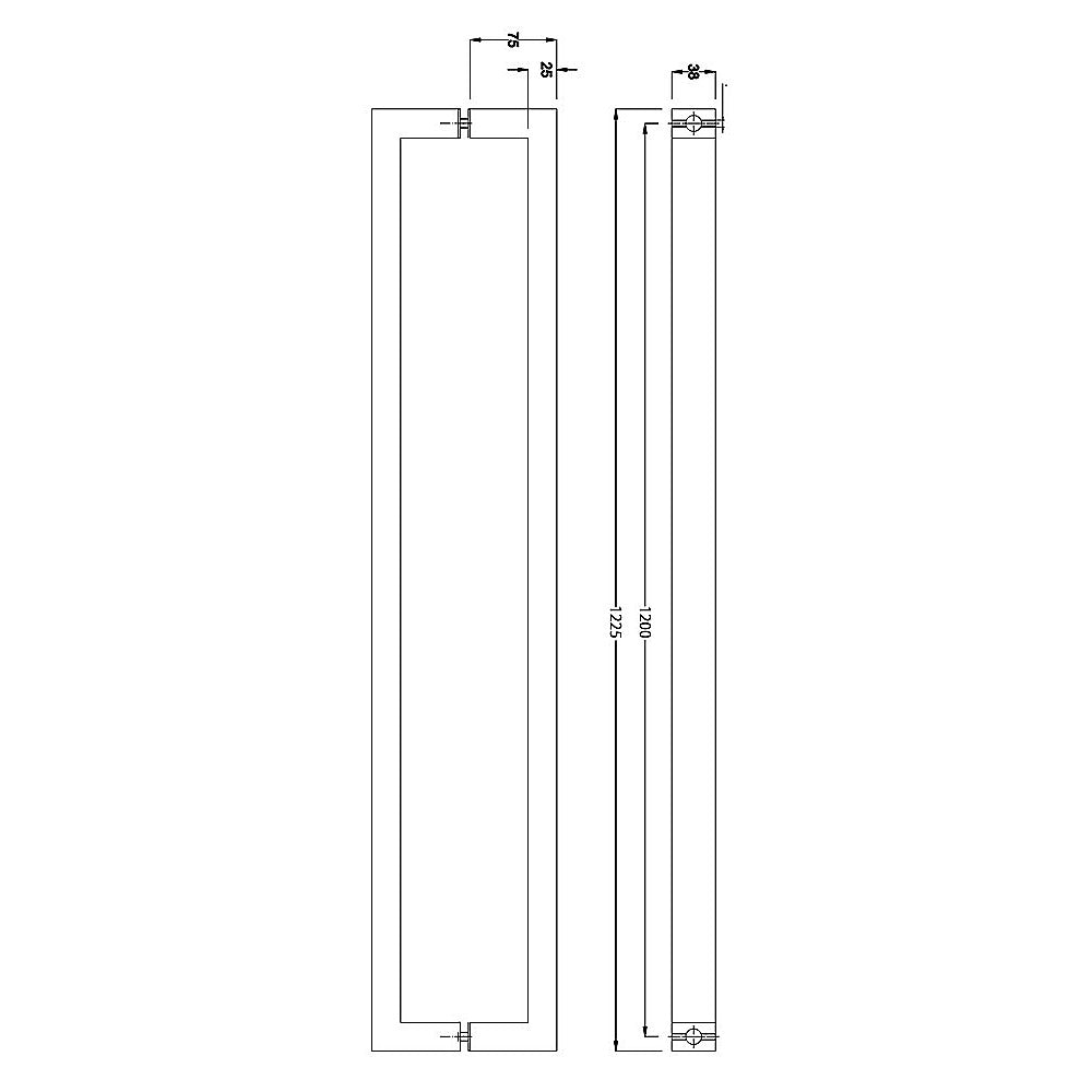 - Dimensions: Height of 1200mm, diameter of 38mm (facing) by 25mm, projection of 80mm