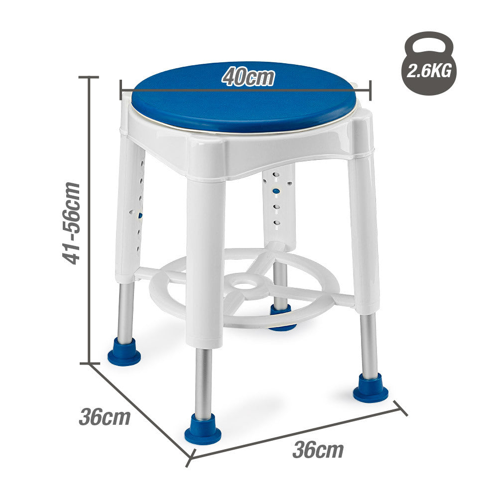 Enjoy extended maneuverability with the 360° swivel seat that easily clicks into position with the accessible lever action. Height adjustable legs with push button locks mean that it can be easily tailored to suit the individual user. The non-slip rubber feet ensure stability, allowing you to wash safely without worrying about the stool moving.