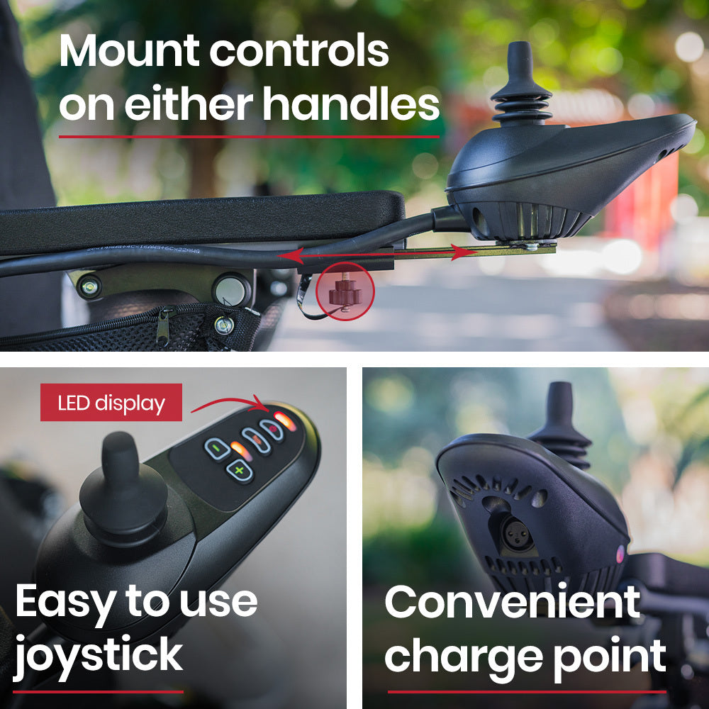 Twin motors offering a total of 500 watts offer an enjoyable riding experience with smooth and responsive performance, not to mention the ability to climb hills and ramps right up to a 15-degree incline! A tight 1m turning circle offers the manoeuvrability you need on paths and in places like shopping centres and airports.