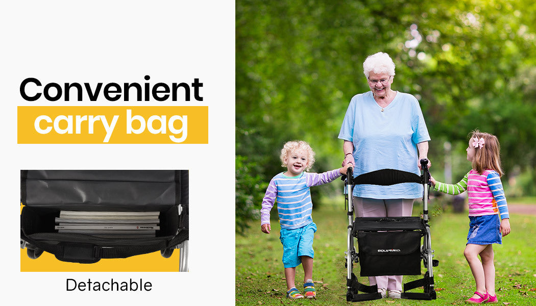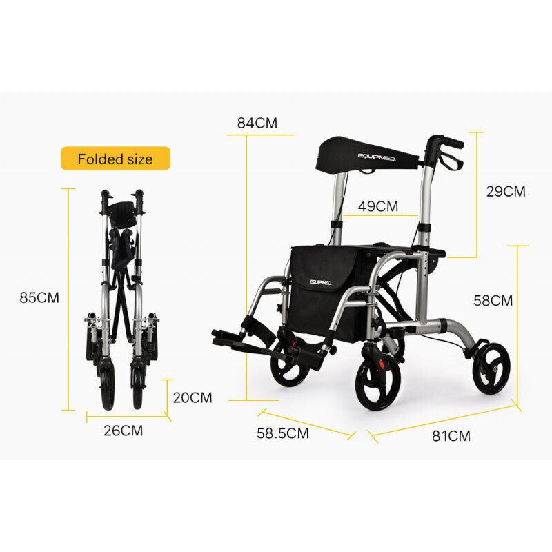 Make the smart choice and enjoy well-deserved safe mobility with the Equipmed SmartRoller 2in1 Rollator and Transit Wheelchair.