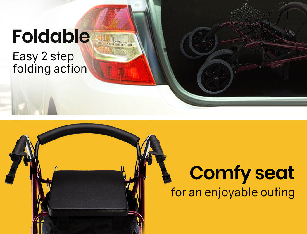This high quality Equipmed rollator is easily foldable for practical storage and transport.