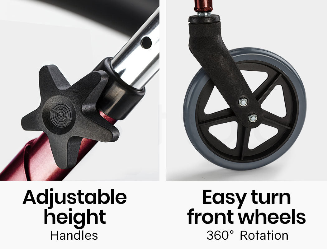 The Equipmed features premium rubber tyres that will never require refilling with air, so you’ll be getting out and about smoothly along paths or through shopping centres in no time.