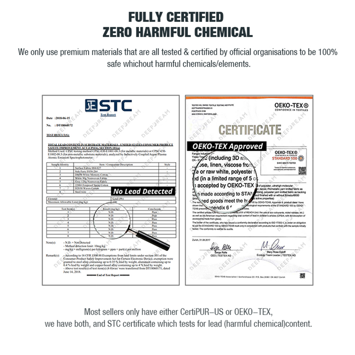 Certification: CertiPUR-US, OEKO-TEX and STC Certificate