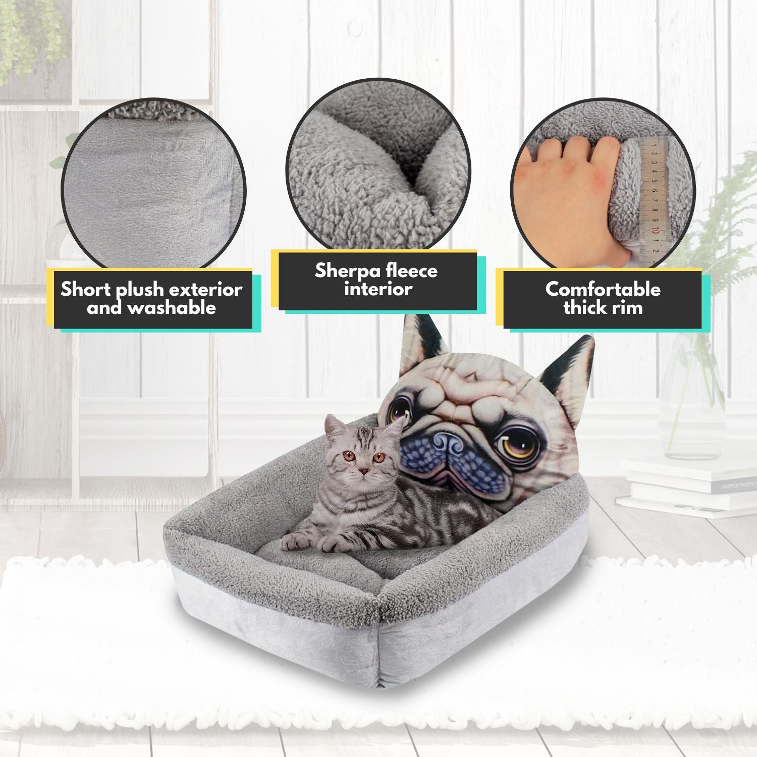 Pet Bed 3D Cartoon Square Round Pug Brown Grey Cat Pug Bear French Bulldog Shiba Inu