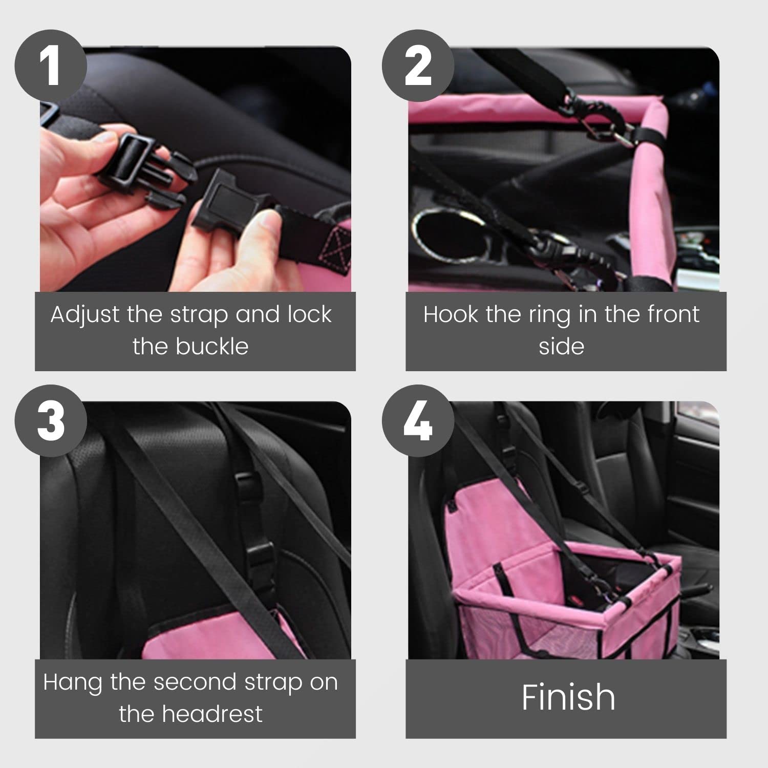 Fits nicely on your car seat, ensures it will not move or fall when you're driving. An extra leash within the seat is included to attach to your pet's collar.