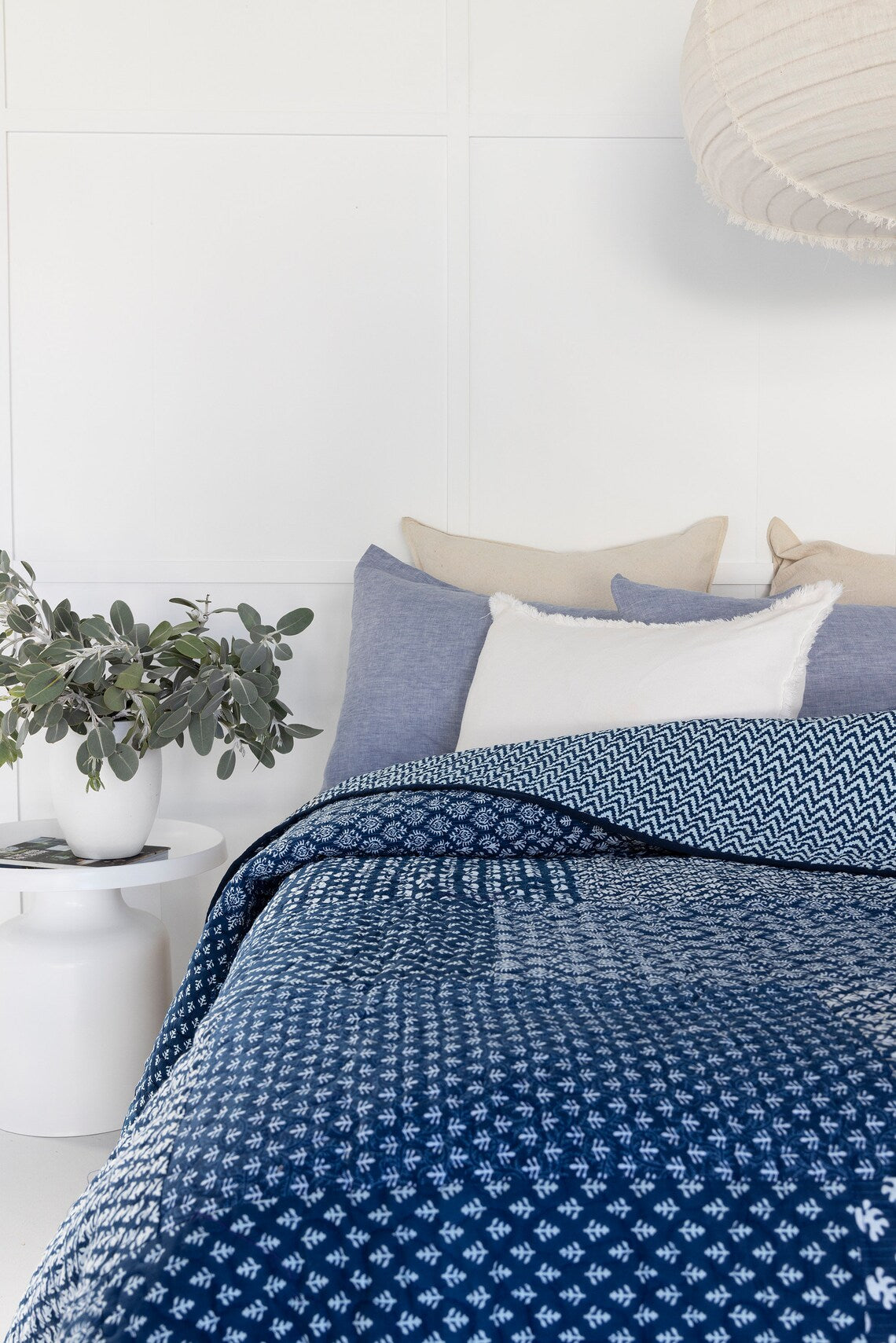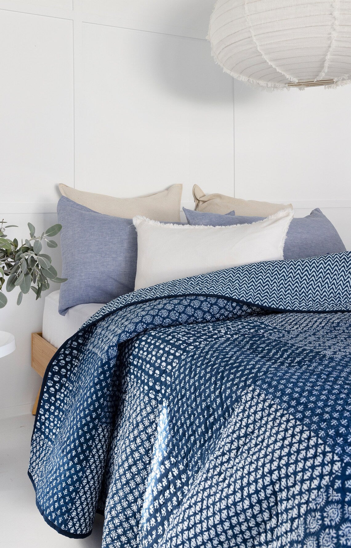 Floral Cotton Quilt Throw Bedspread Block Print Quilt Indian Quilt Comforter Duvet Cover Quilt Gift - Indigo patchwork
