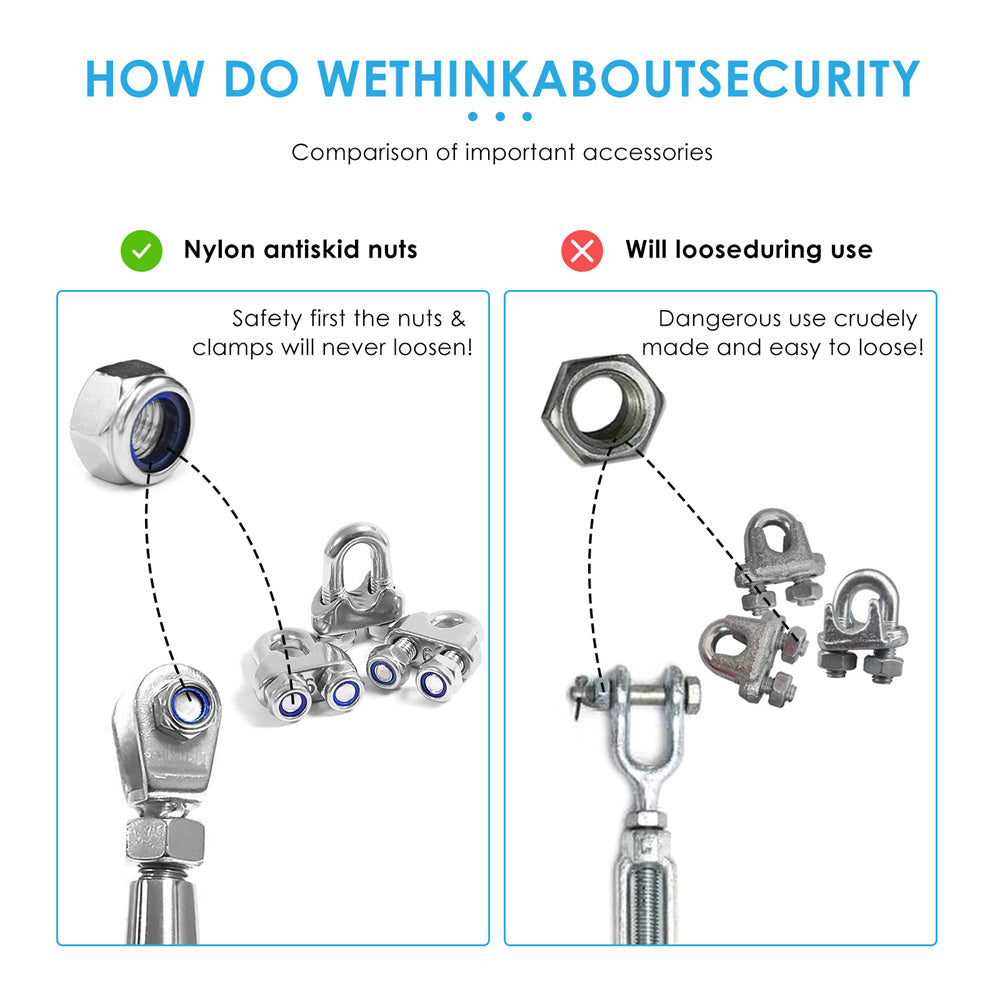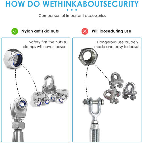 304 Stainless Steel Adjustable Turnbuckle x304 Stainless Steel U Clamps Kit x3