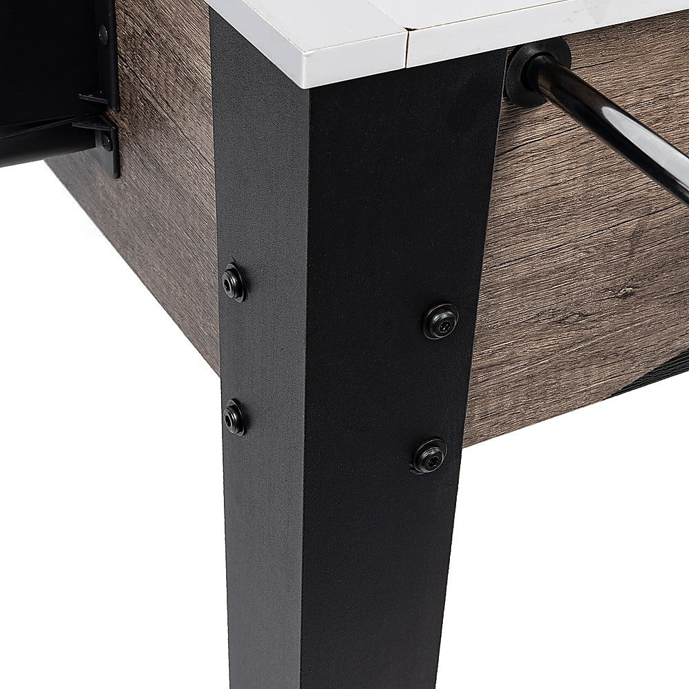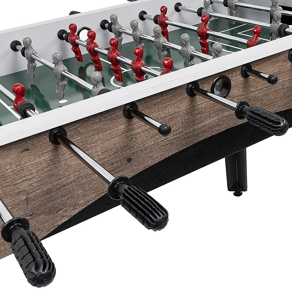 Elevate your foosball experience with this gaming table from Randy & Travis Machinery, a perfect addition to your home or office recreation. Crafted from durable solid wood and featuring steel rods finished in gleaming chrome, this table is designed for lasting enjoyment, even with daily use. Kickstart the game effortlessly with ball serve cups on each side. Ideal for family fun, it's a great fit for your rumpus room and makes an excellent gift for foosball enthusiasts of all ages.