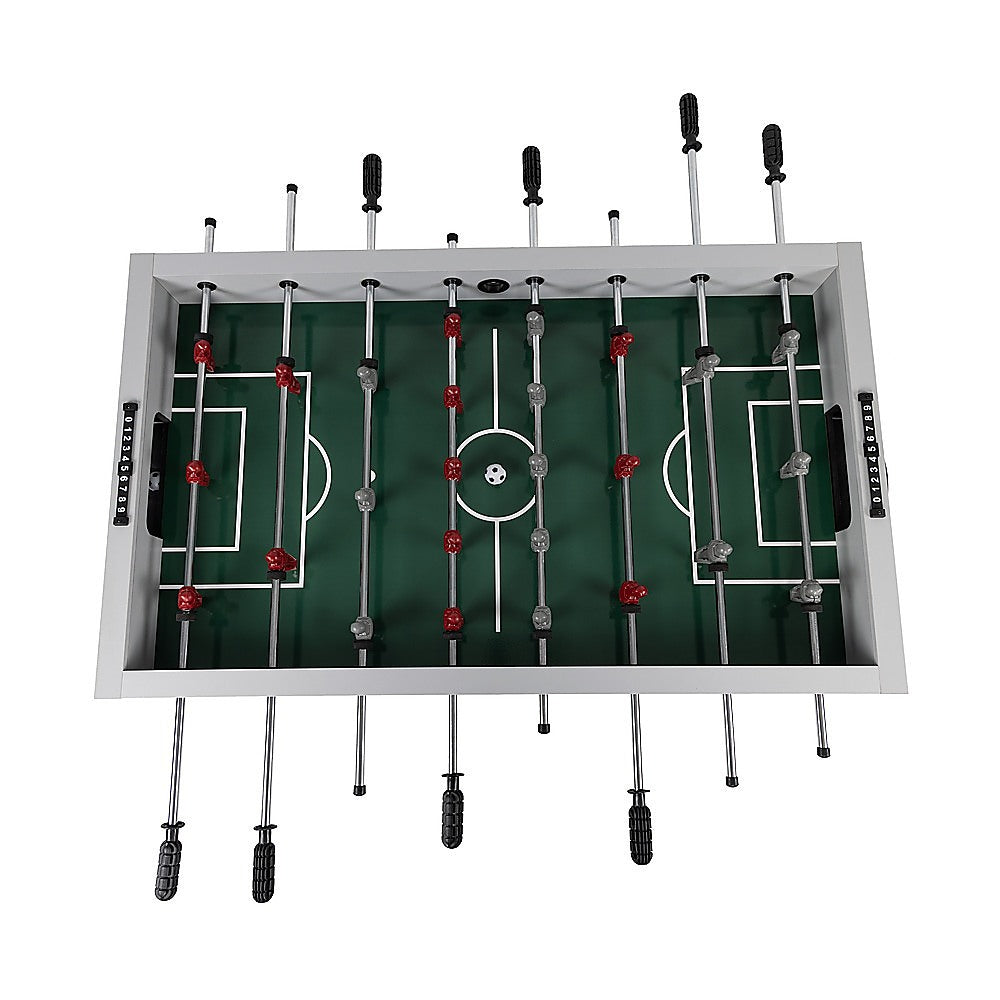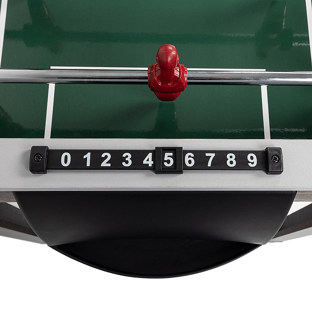 Maximising fun while minimising space, this table boasts a compact design. The sturdy board replicate a real football pitch, and anti-slip grips on the rod bars ensure players have optimal control. Keep score easily with manual scorers for each team or player. Quick and straight-forward setup means you can start playing right away, and it comes complete with everything you need. When the weather's fine, take the excitement outdoors and bask in the sun while enjoying your favourite table game. Whether it's for a holiday or birthday, this foosball table is a fantastic gift for kids, partners, friends, or the entire family. Buy yours today!