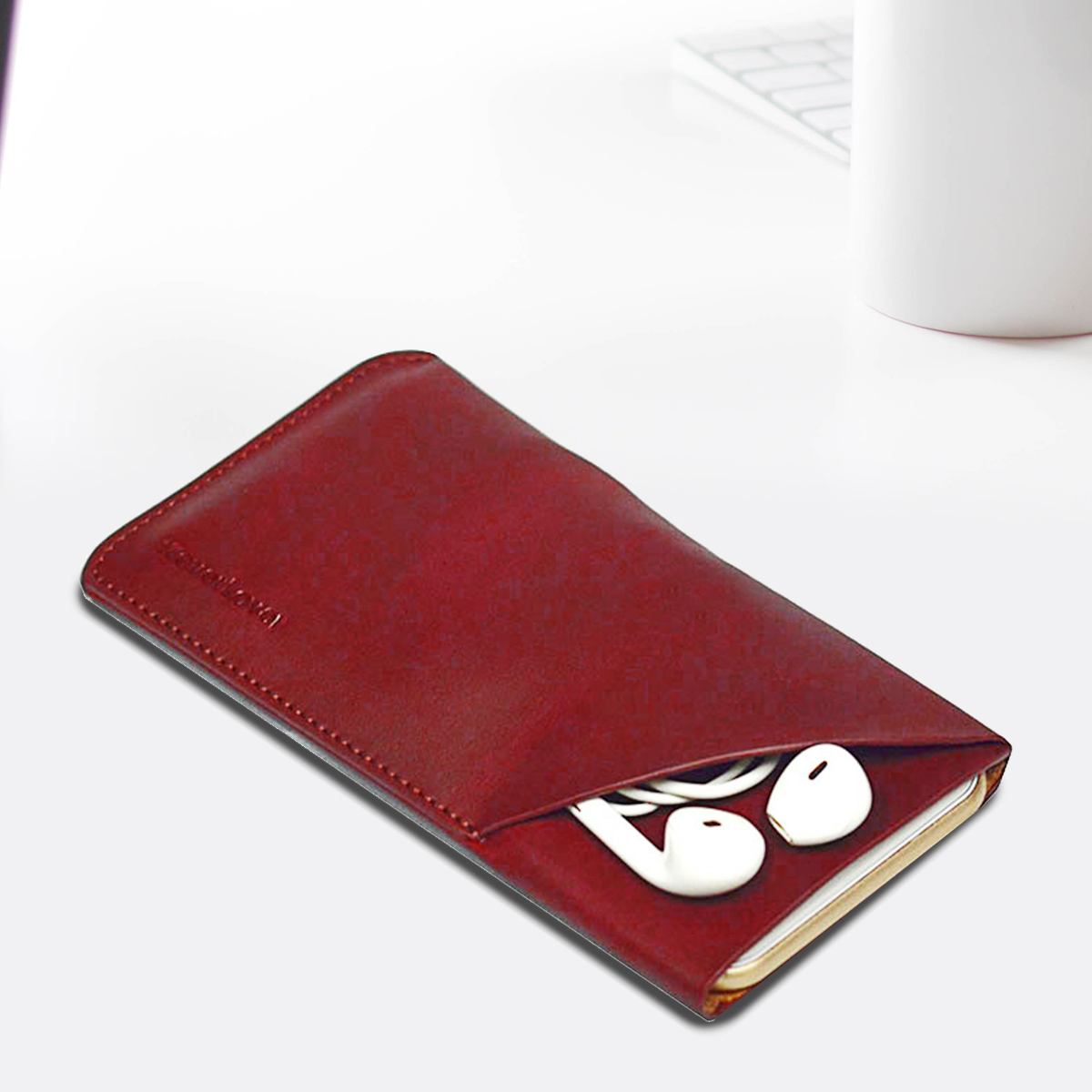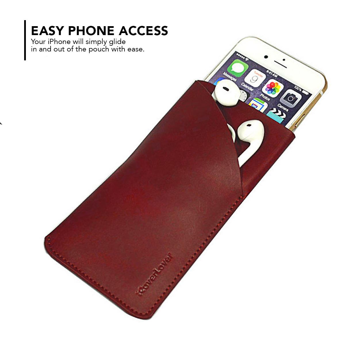 This iPhone SE 5G (2022), SE (2020) / 8 / 7, 6S & 6 Top-grain Genuine Leather Pouch, Headphone Case, Anti-Scratch, Anti-Slip and Wear-and-Tear Resistant features: