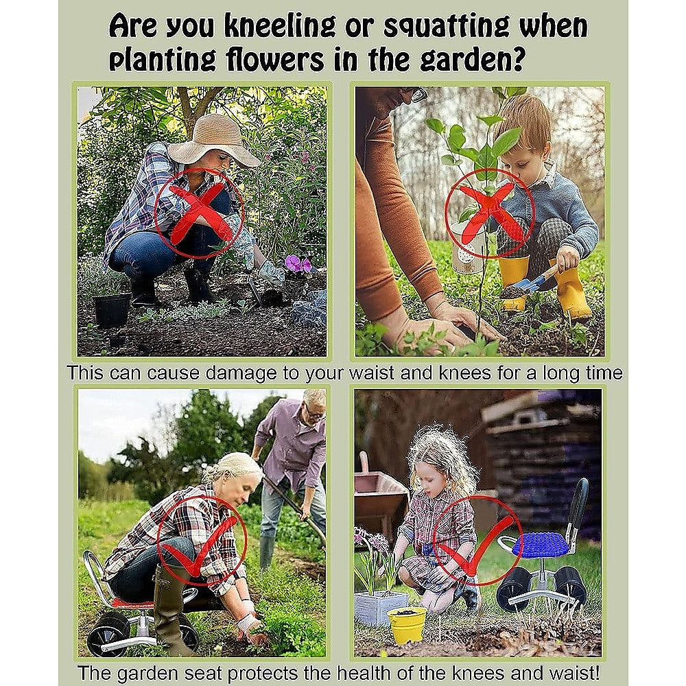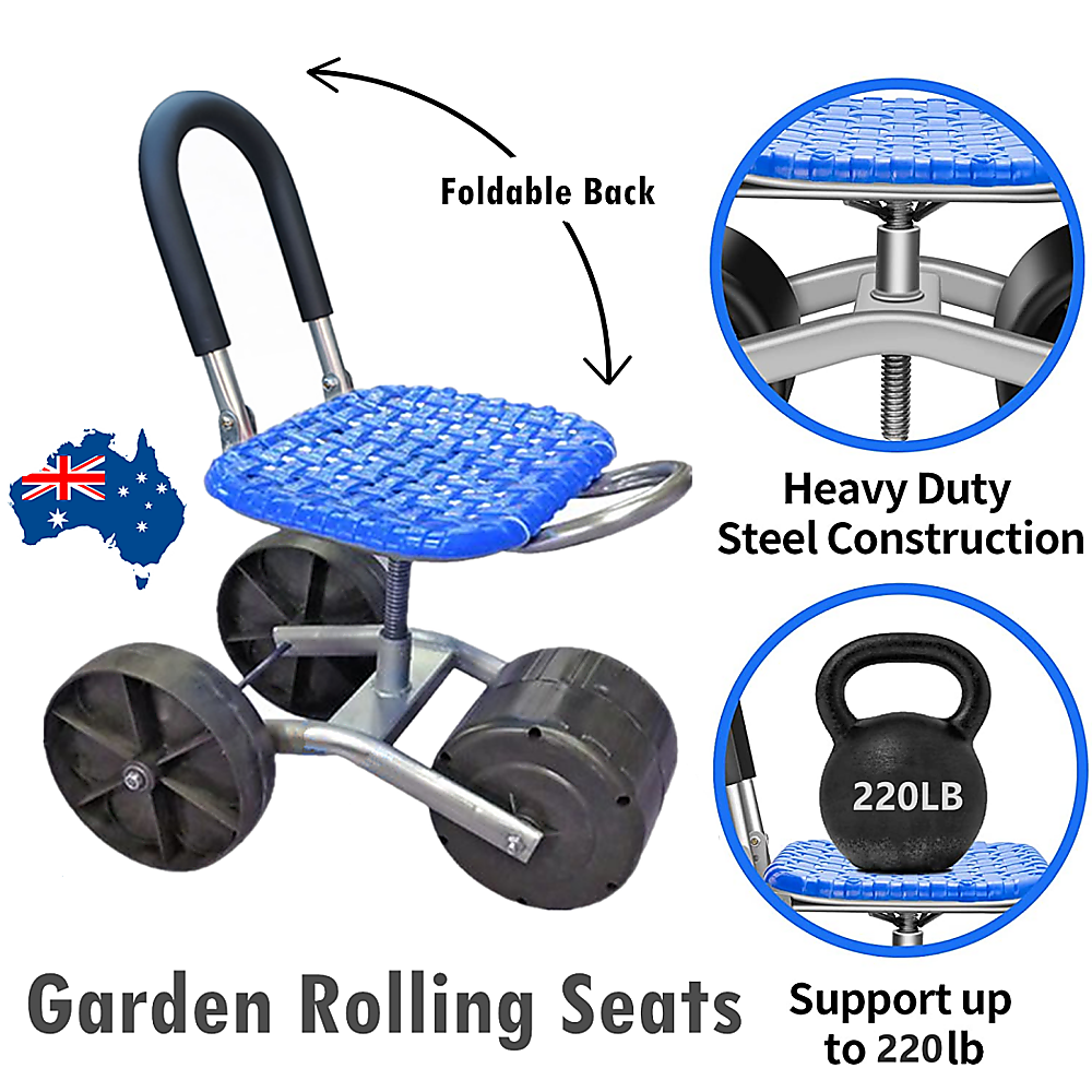 This lightweight rolling garden chair is not only adjustable but also easy to carry. With its steel worm core structure, you can easily adjust the height from 230mm to 350mm.