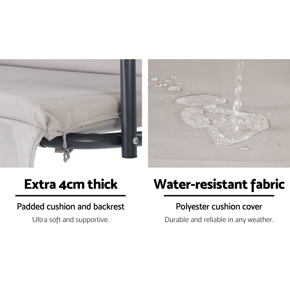 For swinging good times, there is none better than doing it with the Gardeon Canopy Swing Chair. Made of powder-coated steel, the frame is strong and sturdy while the generously padded textilene seat upholstered in