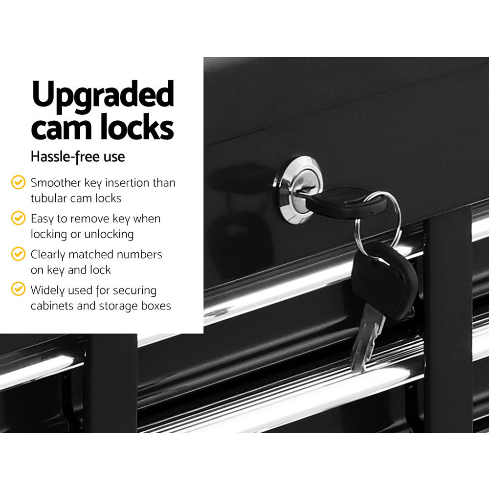 Made from thick high-tensile powder-coated steel, our Giantz 2-in-1 Tool Storage unit is built to keep your precious tools in their proper place with drawers that are specifically designed to cater to various tool sizes. The sturdy construction makes this the ensemble perfect for use with both DIY enthusiasts or workshop professionals. Comprising 17 drawers, with a 10-drawer chest and 7-drawer trolley, each drawer slides in and out effortlessly on quality ball bearings incorporated into the metal drawer runners. Each drawer is also lined to protect your tools and keep them from moving about. Better still, the set is installed with upgraded cam locks that are more reliable and secured compared to general locks. Not least, this heavy-duty ensemble is installed with four castor wheels with two that have brakes for easy mobility and fast standing.
