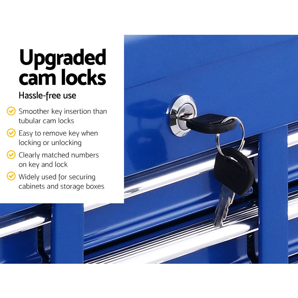 Made from thick high-tensile powder-coated steel, our Giantz 2-in-1 Tool Storage unit is built to keep your precious tools in their proper place with drawers that are specifically designed to cater to various tool sizes. The sturdy construction makes this the ensemble perfect for use with both DIY enthusiasts or workshop professionals. Comprising 17 drawers, with a 10-drawer chest and 7-drawer trolley, each drawer slides in and out effortlessly on quality ball bearings incorporated into the metal drawer runners. Each drawer is also lined to protect your tools and keep them from moving about. Better still, the set is installed with upgraded cam locks that are more reliable and secured compared to general locks. Not least, this heavy-duty ensemble is installed with four castor wheels with two that have brakes for easy mobility and fast standing.