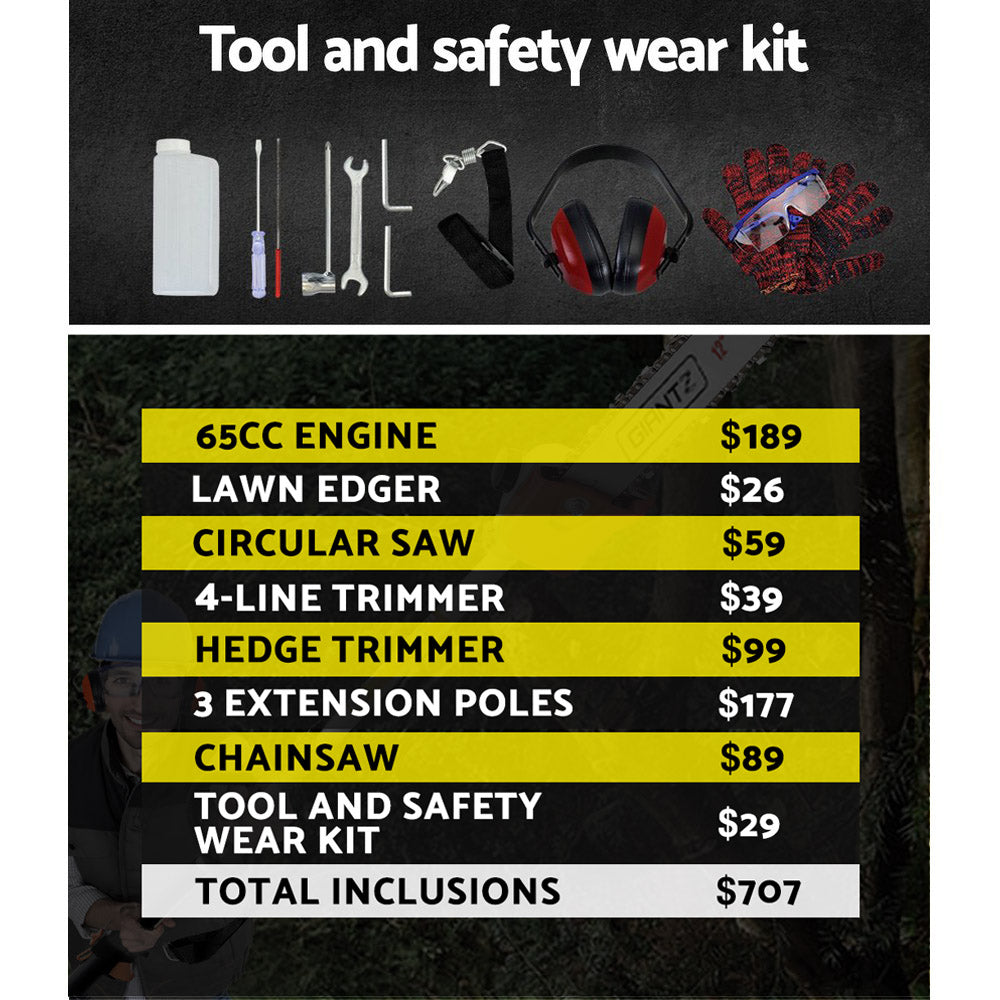 1 x GIANTZ 2 Stroke 65CC 7-IN-1 Pole Chainsaw