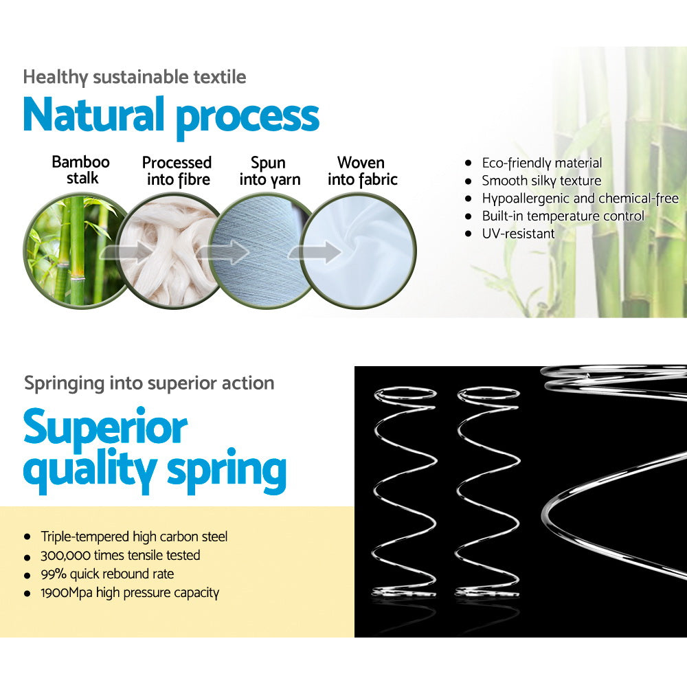 Now, with an exclusive 500gsm bamboo charcoal knitted fabric cover, the Giselle Bedding Alanya Series 34cm Euro Top Mattress is certainly above and beyond the ultimate in sleep health. This means that Mattress has even more health benefits for you including better blood circulation and reduced stress over a full night - sleep. The lavish construction also addresses all the elements that make for quality sleep - plush Euro Top padding, high-density foam and an innovative independent coil system for unrivalled zonal support. Also, with its 34cm thickness, our Euro Top Mattress guarantees absolute comfort with medium-firm support that many Australians love and desire. Not least, the Euro Top Mattress comes with side handles for effortless positioning. So awake rejuvenated every day and make it a really good morning with the Giselle Bedding Alanya Series 34cm Euro Top Mattress. Get yours today.