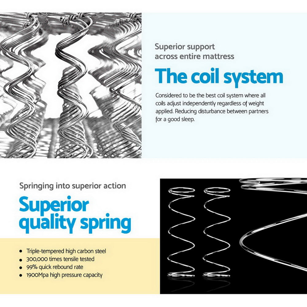 Outside, its pillow top and soft quilting top layer is an oasis of luxurious comfort. Lush and delightful, this top layer is guaranteed to make you feel good all over. Inside, the 5-zone Bonnell spring offers targetted relief from head to toe while distributing your weight evenly throughout the mattress. The independent coil system also ensures undisturbed sleep from any movement from your partner.