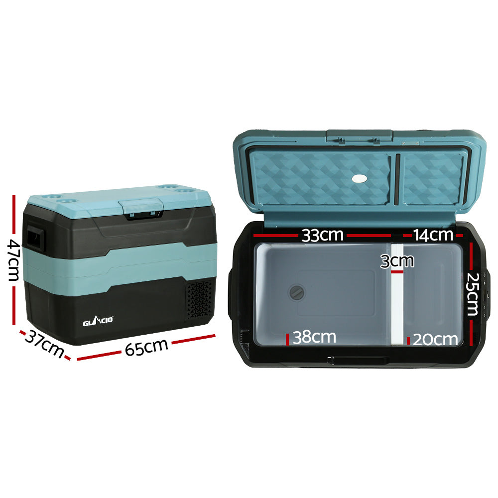 In the market for a portable fridge or freezer? Our exceptional Glacio Portable Fridge/Freezer is one cool device with extraordinary performance. Perfect for use on the road or indoors, the fridge easily plugs into any 12V, 24V or 240V power point for the powerful compressor to kick in its cooling prowess. A simple LCD display with even simpler operational setting allows you to start the refrigeration process easily: just turn on the power, set the temperature, and the built-in microcomputer will do the rest. The 55W compressor is very energy-efficient, about 1.32kWh for every 24 hours of use. When running on DC power, the battery has a 3-stage battery charging protection that cuts off charging once the voltage setting is attained to ensure longer-lasting battery life. The fridge has plenty of space for all your food and drinks, and you can change the compartment size depending on your needs with the removable insulation board. The heavy-duty exterior is designed to handle all the knocks and bumps of a road trip and comes with a USB port, safety locks, cup holder and a lifting handle for convenience. With so much going for it, our Glacio Portable Fridge/Freezer is surely your choice of a reliable cooler for all your outdoor (or indoor) escapades.