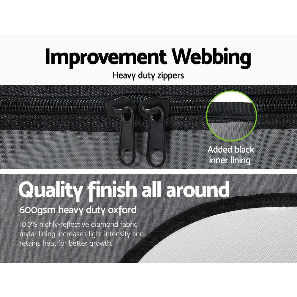 Whether you're a budding novice or a seasoned green thumb, our Greenfingers hydroponics grow tent is perfect for you. Lightweight and portable, our grow tent is equipped with all the necessary essentials to facilitate the healthy growth of your plants and vegetables. Made from 600D oxford and double-layer strong corners, the grow tent is built to last. Includes fittings and space for various sized fans, lights and filters, a spacious interior and a sturdy, power-coated steel frame for ongoing use in typical Australian climatic conditions. The interior is easy accessible through the zippered U-shaped observation window, while vent ports make climate control a breeze. Easy to assemble or take down, our grow tent makes growing your greens easy with the perfect light, temperature and air conditions, both in season and out of season.