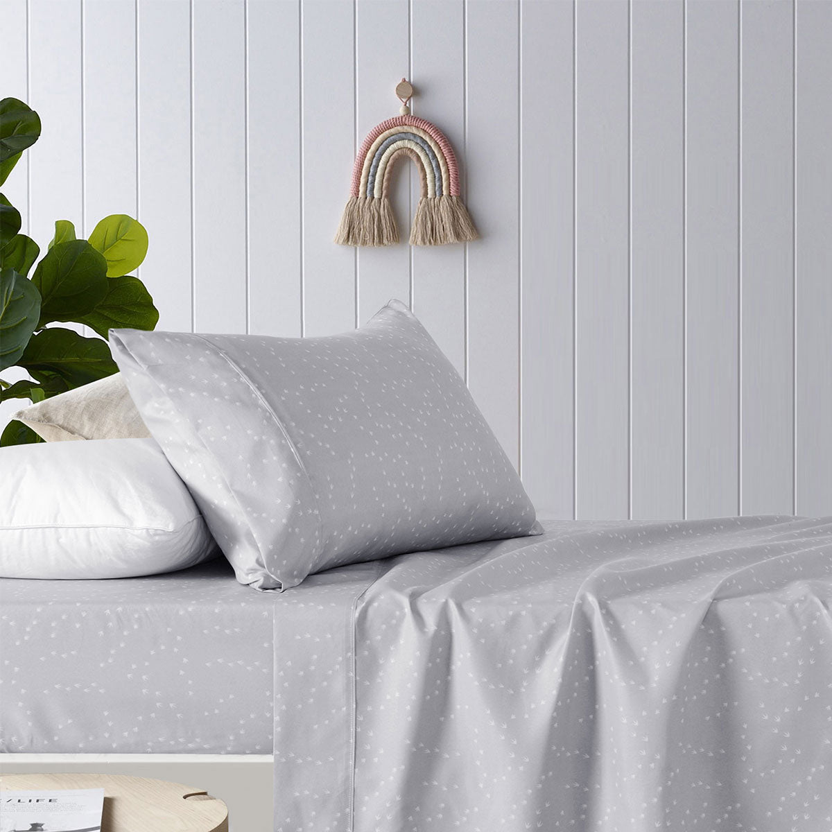 Happy Kids Paws Grey Printed Microfibre Sheet Set Double