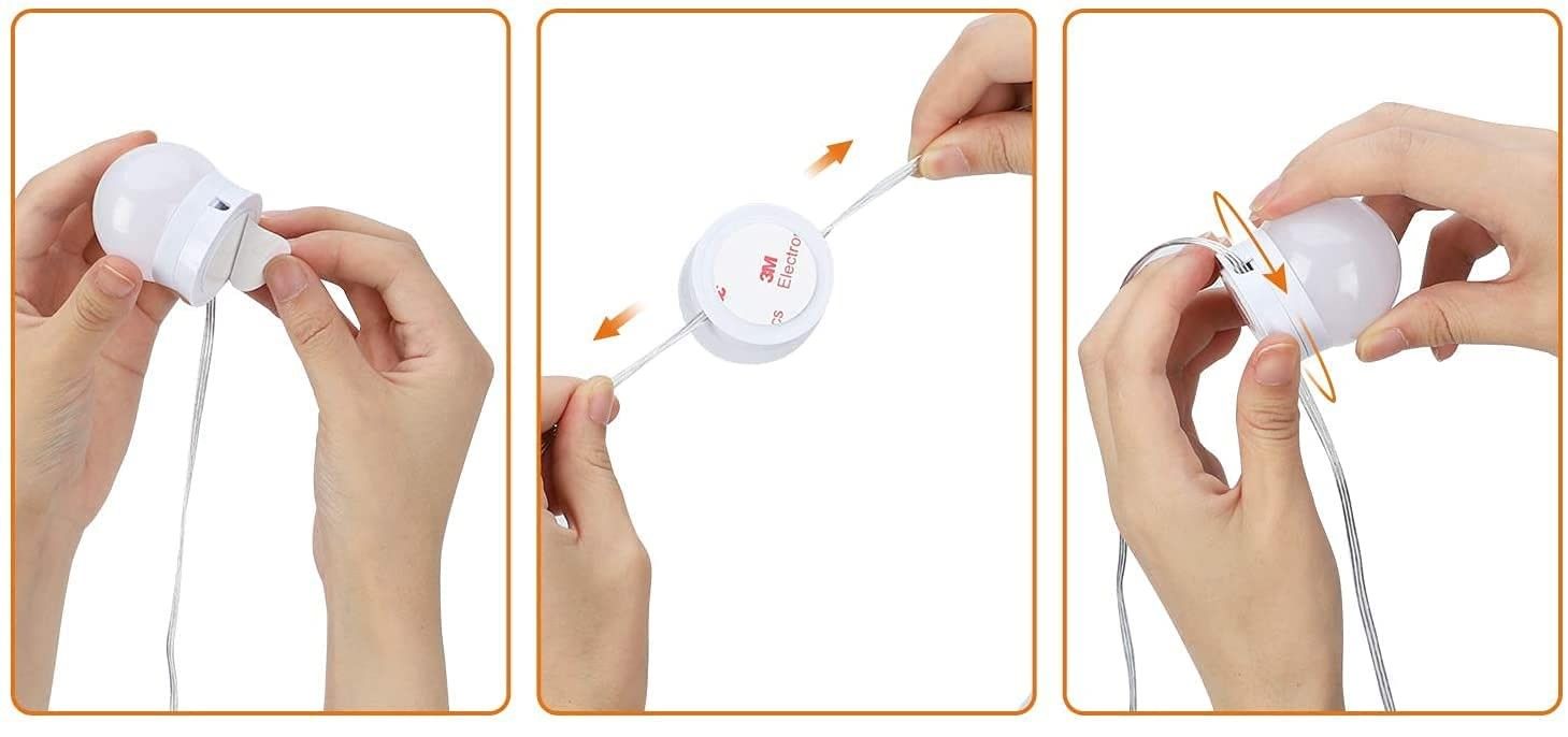 - Easy To Install & Hide Extra Wire: It only takes a few minutes to set up your own Hollywood style makeup mirror. The 3m full-length wire can be hidden into the base of the bulb by rotating the lampshade to achieve the best DIY effect and keep your mirror neat and beautiful. The USB cable design supports multiple charging options, which is convenient for anywhere.