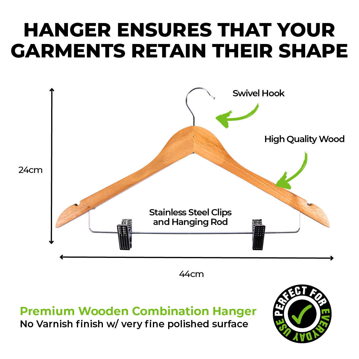 Home Master 72PCE Wooden Coat Hangers Adjustable Clips Swivel Hook 44cm