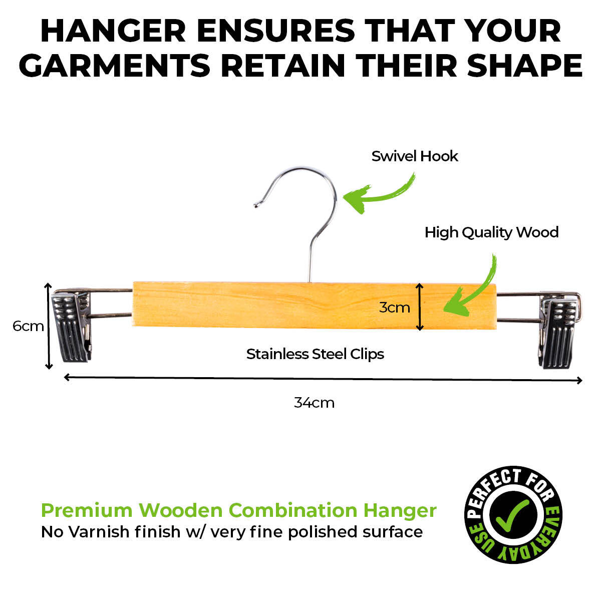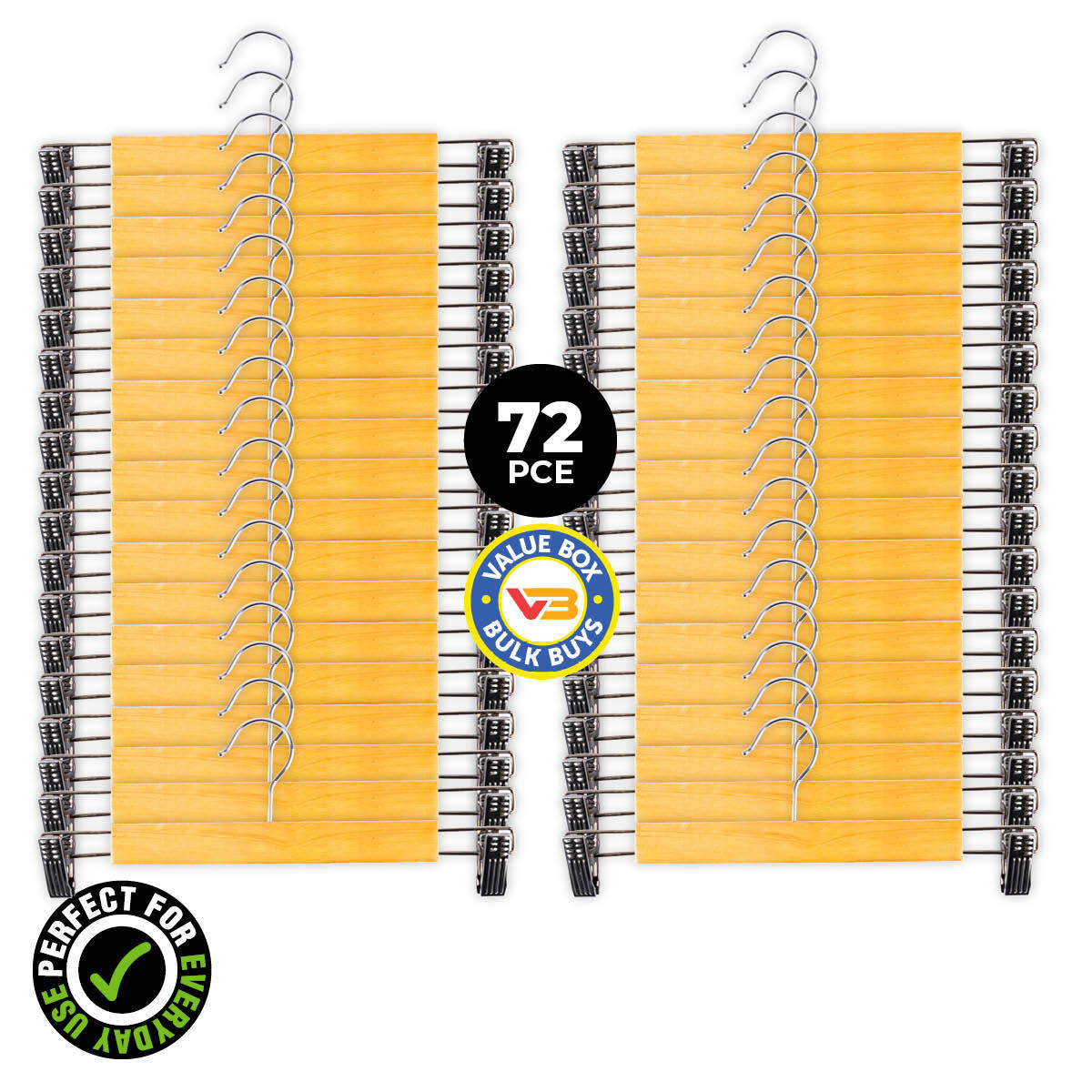 Home Master 72PCE Wooden Trouser Hanger Adjustable Stainless Steel Clips 34cm