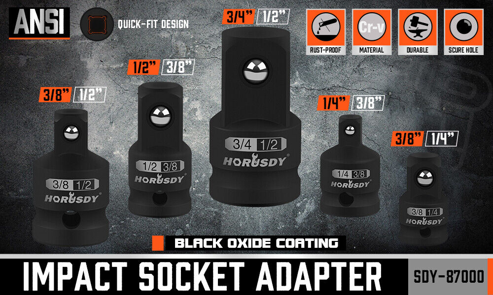 HORUSDY 5Pcs Impact Socket Adapter Set Socket Reducer 1/4 3/8 1/2 Inch Drive