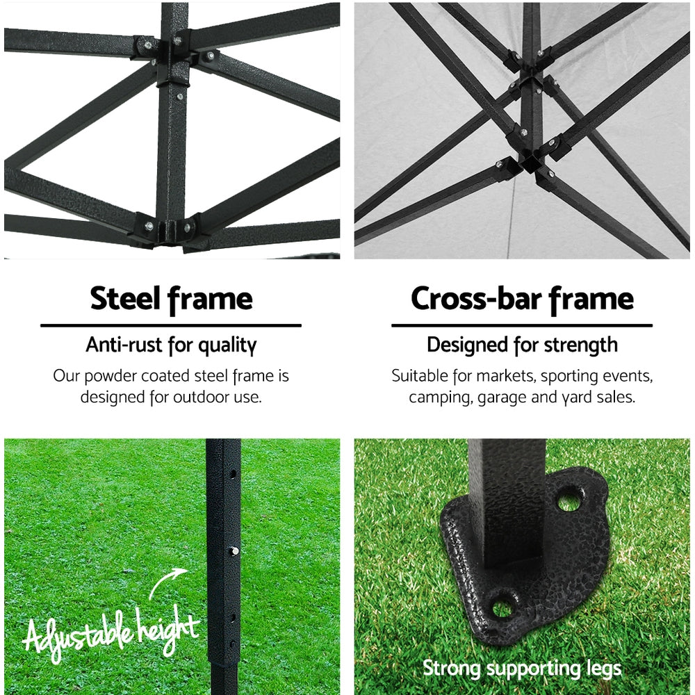 Featuring high density, long lasting silver-coated oxford fabric with effective UV and water repellent treatments, this INSTAHUT 3X3 Pop Up Gazebo provides a lovely ground and canopy coverage of 300 x 300cm. It is perfect for all your upcoming outdoor activities, as a sunshade station as well as a shelter for unexpected rains.