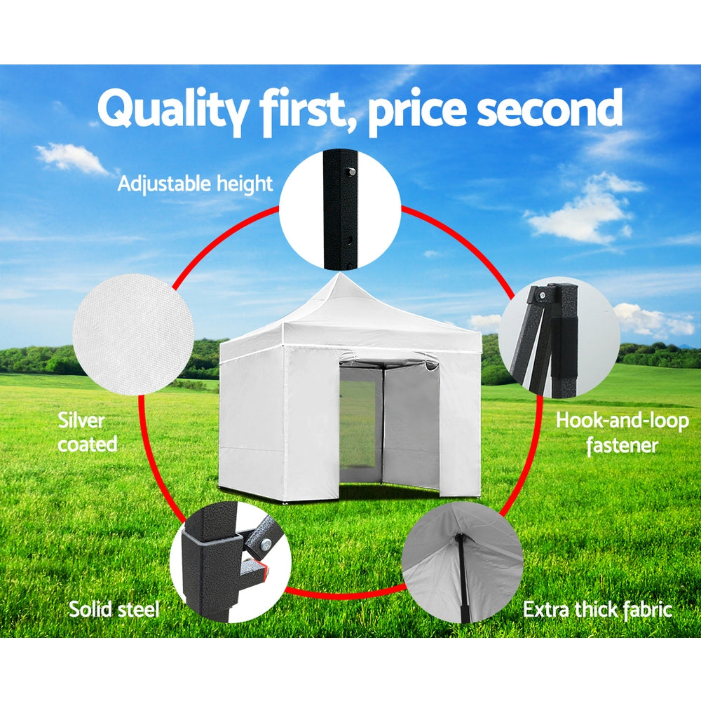 The INSTAHUT gazebo has 4 adjustable height levels to suit different height needs. It is ideal for markets, sporting events, camping, garage and yard sales, school events, trade shows and many more.