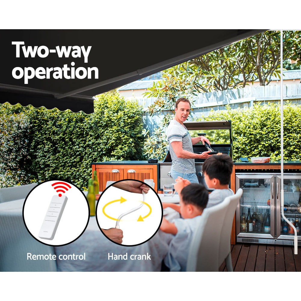 To open or retract the shade, just use the remote control. Or if you prefer to do it manually, a hand crank is provided too. Mounting the frame and shade is also made simple with the included wall brackets. Make it a nice and shady environment with our Auto Folding Arm Awning. Get yours today.