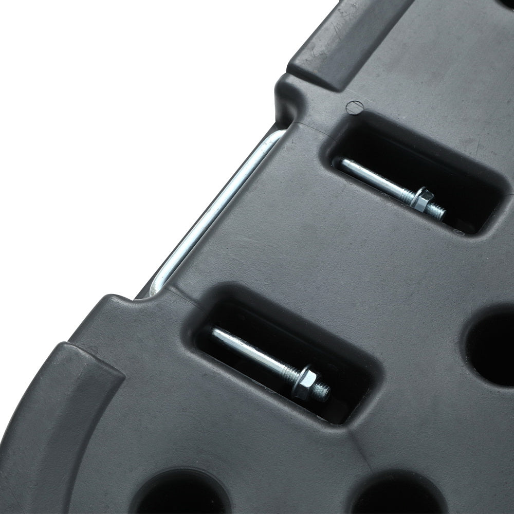 It's time to get out and enjoy the great outdoors. Bring your umbrella, keep it steady and get ready for summer with the Instahut Offset Umbrella Base. Featuring a sturdy 4-plate design constructed from heavy-duty HDPE plastic, the stand is built to withstand moderate gusts of wind and is anti-fade. To use, simply fill with water through the fill spout and insert your umbrella. When fully filled with water, each piece has an approximate weight of 15kg, giving you a combined weight of 61.61kg. Use in a 2-plate, 3-plate or 4-plate configuration to best suit your needs. When the day is done, simply empty the plates and carry home with the convenient carry handles. No matter how you use it, you'll feel confidently secure with the Instahut Offset Umbrella Base.