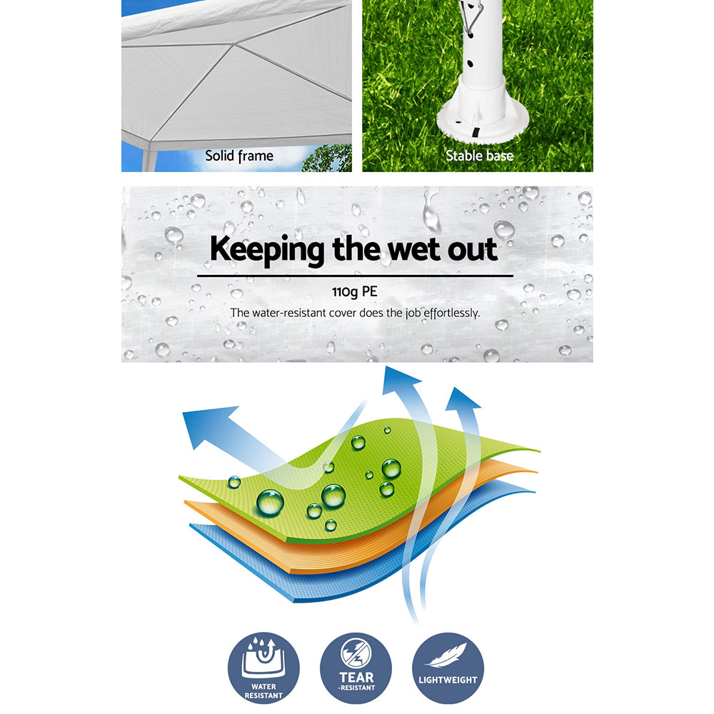 Featuring high density, long lasting PVC coated oxford fabric with effective UV and water repellent treatments, this INSTAHUT 3X3 Gazebo provides a lovely ground and canopy coverage of 300 x 300cm. It is perfect for all your upcoming outdoor activities, as a sunshade station as well as a shelter for unexpected rains.