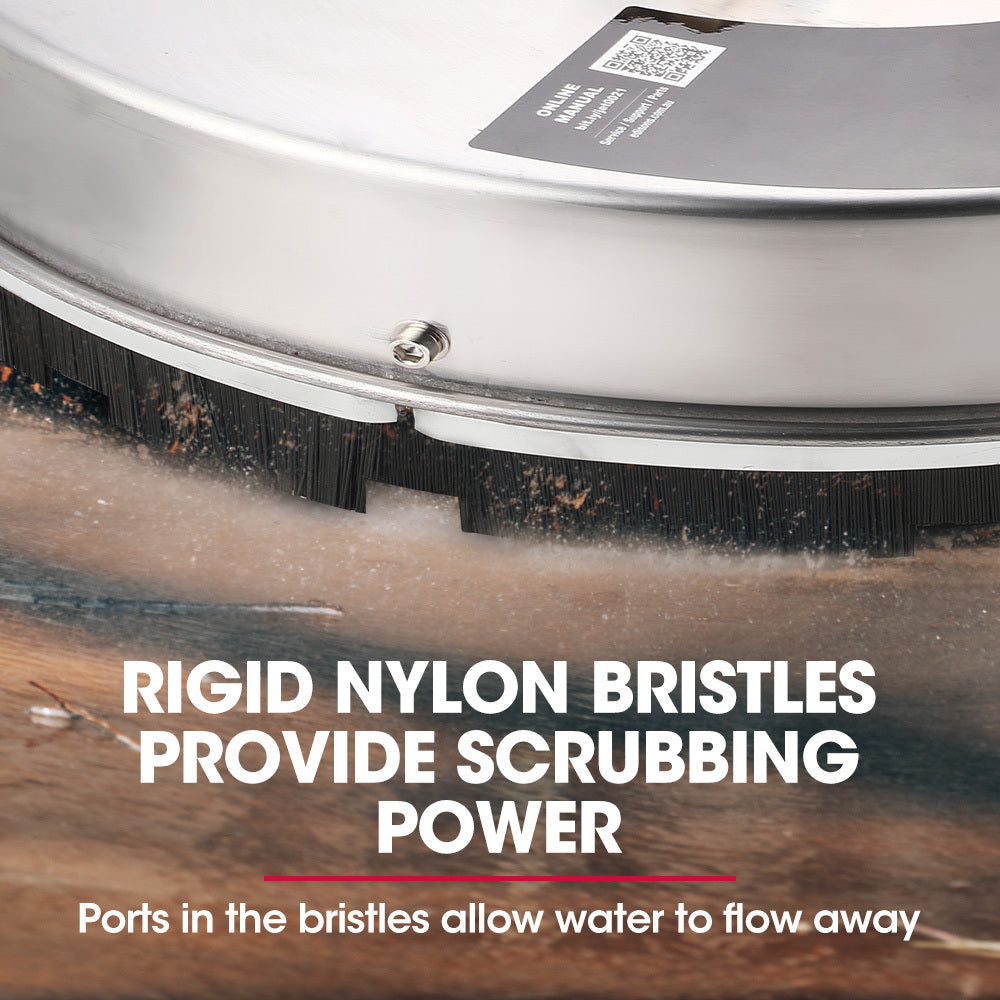 It’s constructed from 304 Stainless steel for corrosion resistance and durability. With smooth rolling nylon castors it is the ideal tool for any of your flat surfaces, wooden decks, concrete drives and paths, brick and tiled patios, pool decks, and any other flat durable surface that requires cleaning.